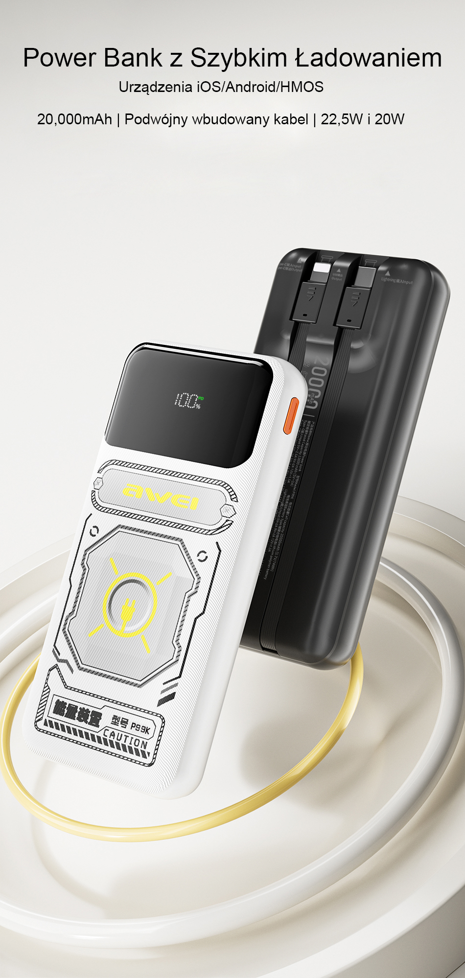 AWEI P99K 20000mAh 22.5W powerbank black