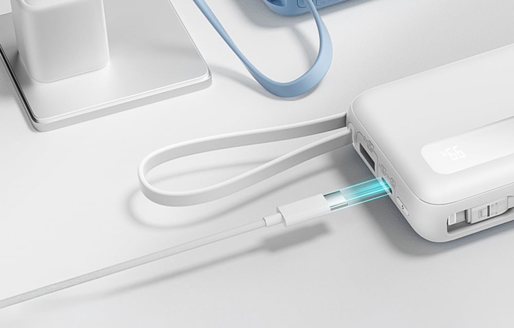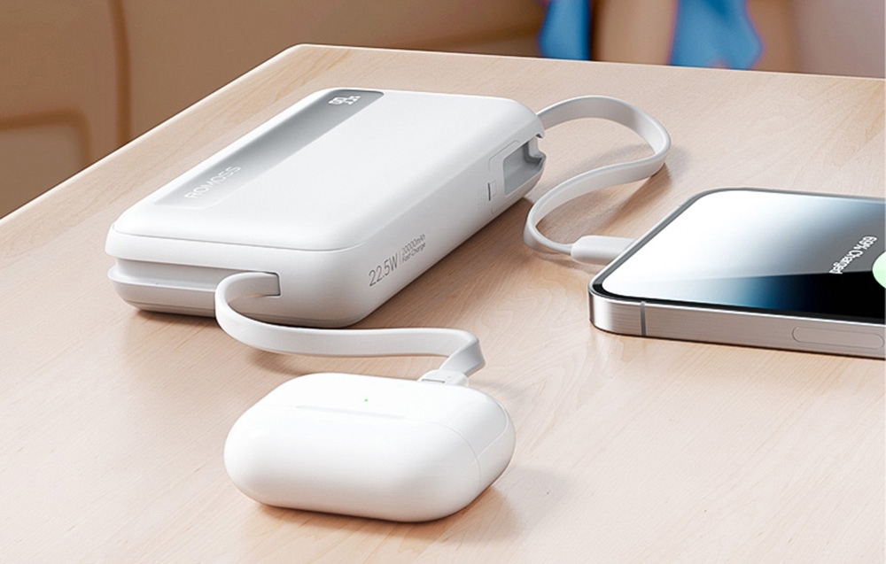 Romoss PPR20 to powerbank, który charakteryzuje się pojemnością wynoszącą aż 20 000 mAh oraz funkcjonalnością na najwyższym poziomie. Dzięki wbudowanym kablom USB-C (20/22.5 W) i Lightning (20 W) możesz szybko naładować zarówno smartfony z systemem Android, jak i iPhone’y – od modelu 8 aż po serię 15. Kabel USB-C pełni dodatkowo funkcję zawieszki ułatwiającej przenoszenie, a specjalny slot pozwala na dyskretne schowanie przewodów, zapewniając estetyczny i uporządkowany wygląd. Co więcej, urządzenie oferuje aż 4 porty, co umożliwia jednoczesne ładowanie wielu urządzeń – idealne rozwiązanie na rodzinne wyjazdy i wspólne korzystanie z energii.