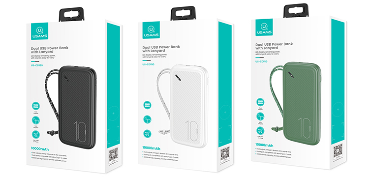 Usams US-CD150 PB56, a high-capacity power bank of 10,000mAh with four ports: 2xUSB-A/1xUSB-C/1xMicroUSB. The power bank is designed for charging two devices simultaneously. The built-in LED indicator continuously informs you about the energy capacity of your power bank. The power bank is equipped with a multi-protection package for safe charging. It protects against overcharging, surges, and adjusts the voltage to the needs of the device, protecting it from overheating.