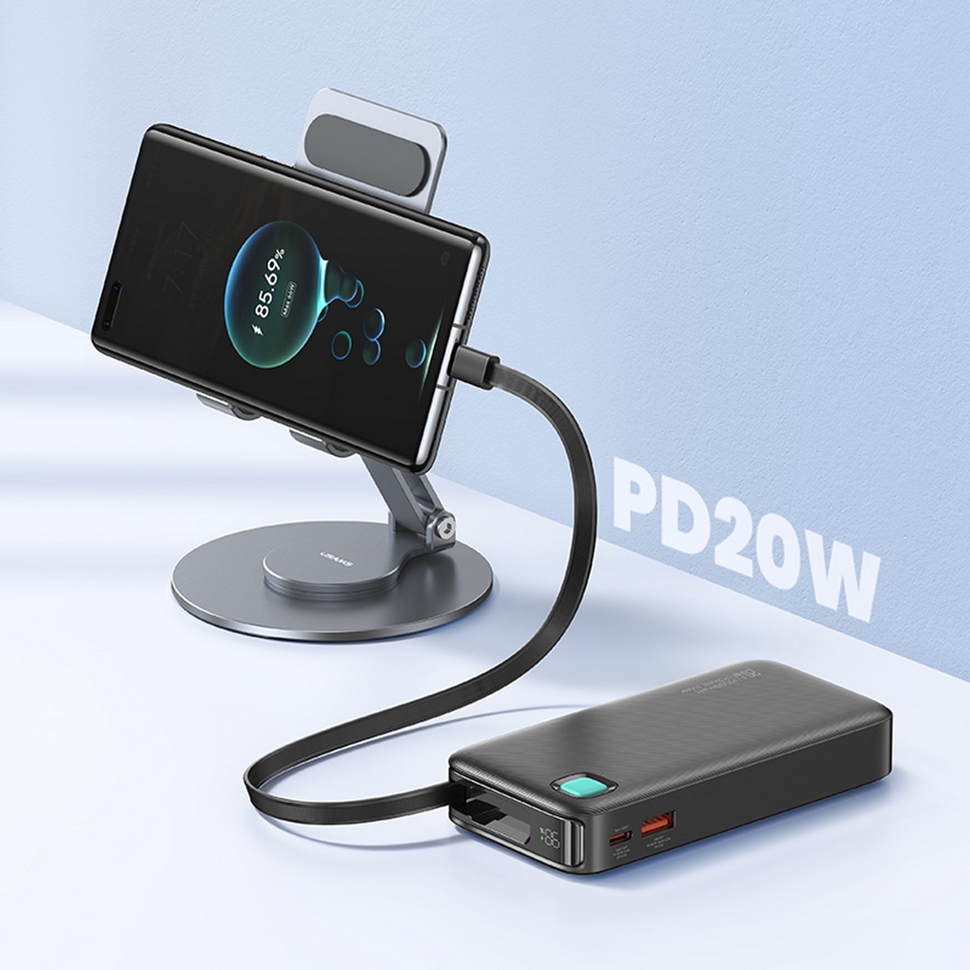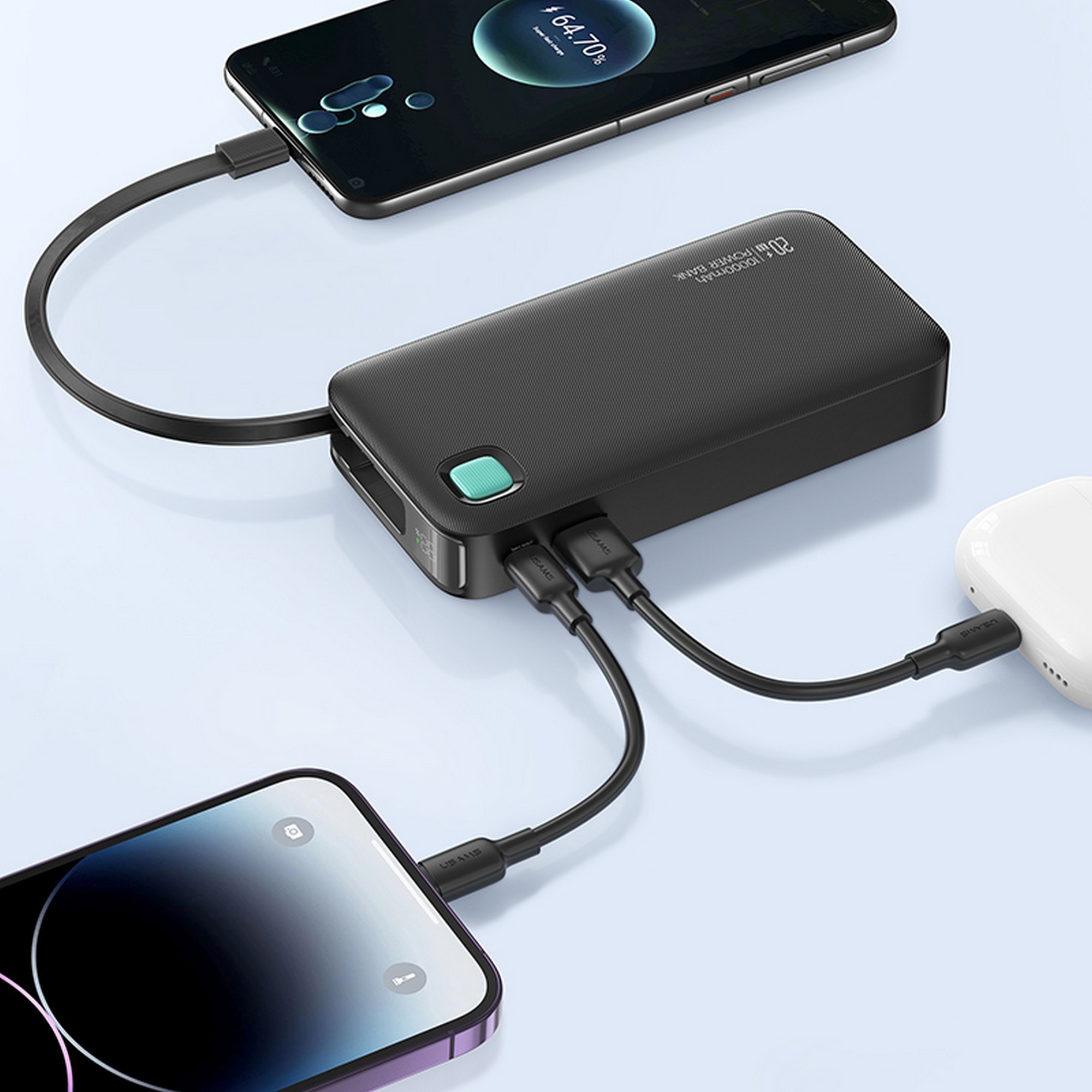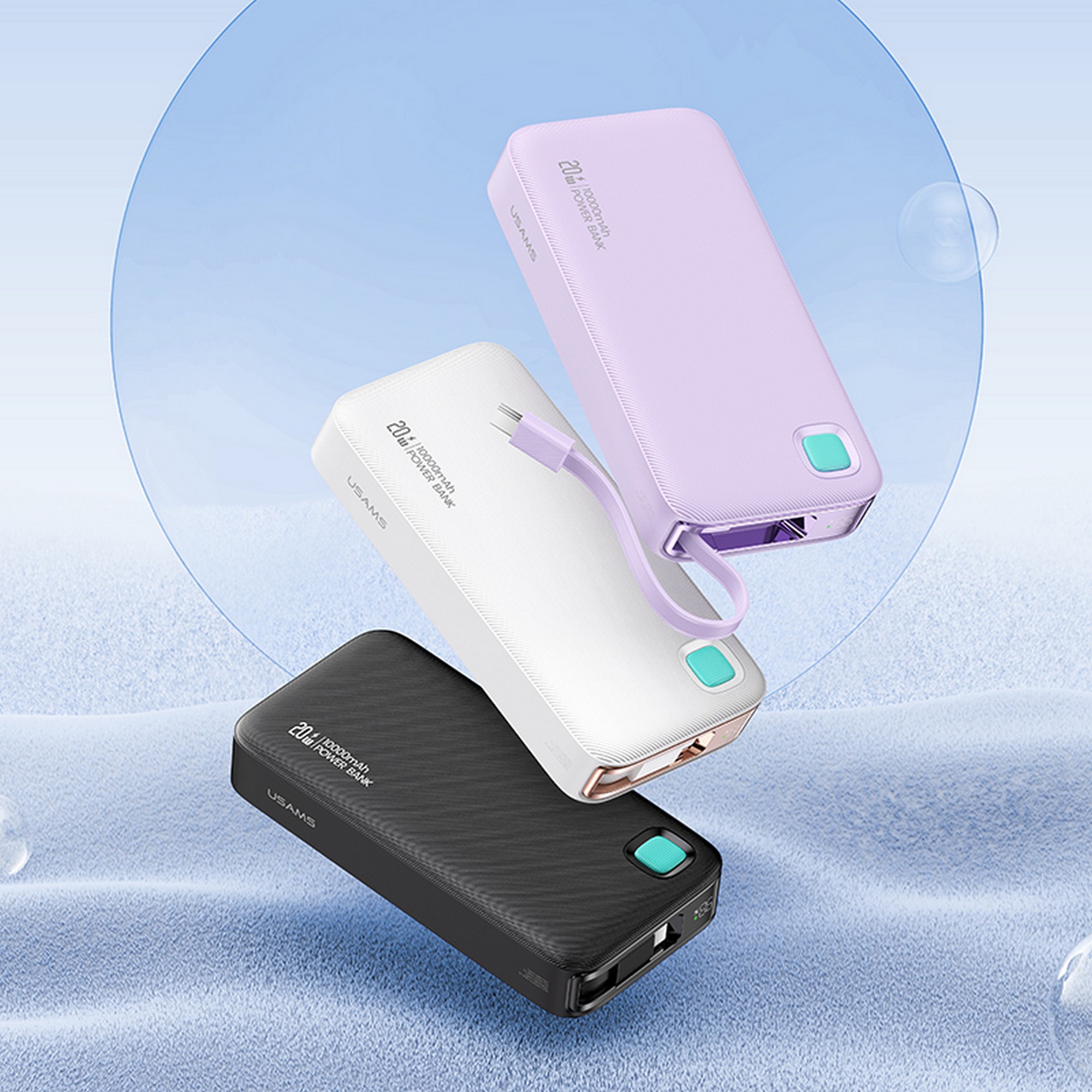 USAMS Power Bank + retractable USB-C cable 10000 mAh PD 20W Fast Charge XY Series purple