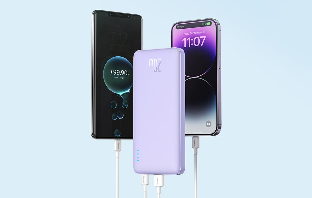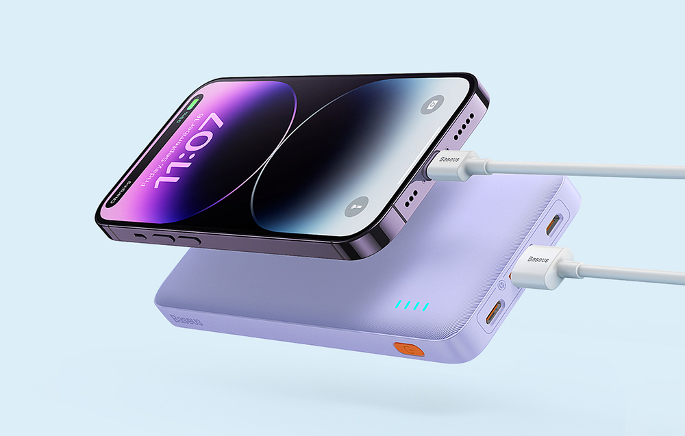 Baseus Airpow Power Bank is compatible with a wide range of devices, making it an incredibly versatile tool for any user. The USB-C and USB-A ports can easily charge smartphones, tablets, headphones, and other electronic devices. Additionally, the stylish purple color and modern look make it not only functional but also visually appealing accessory.