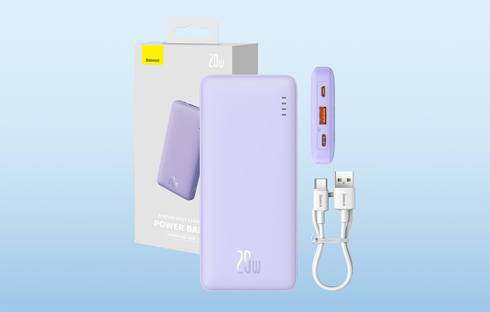 Baseus Airpow Power Bank 10000mAh 20W in an elegant purple color is a modern and practical solution for anyone who needs extra power on the go. With a large capacity and 20W fast charging technology, this power bank is the perfect companion for everyday challenges. Its compact design makes it easy to fit in your pocket or bag, offering quick and efficient charging anytime, anywhere.