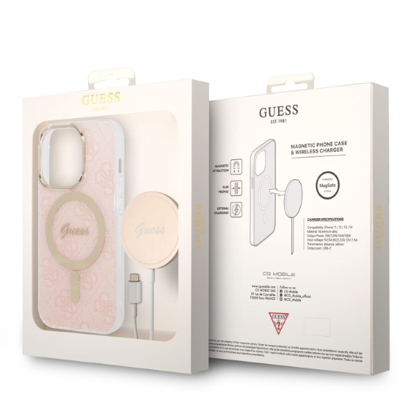 Guess GUBPP14LH4EACSP Case + Wireless Charger Apple iPhone 14 Pro pink hard case 4G Print MagSafe