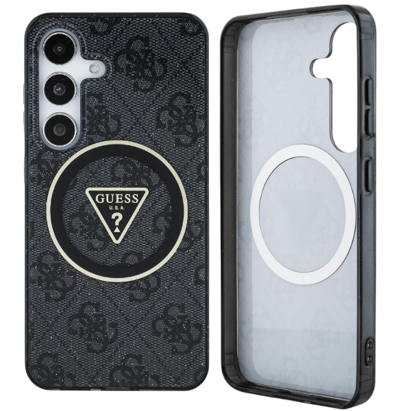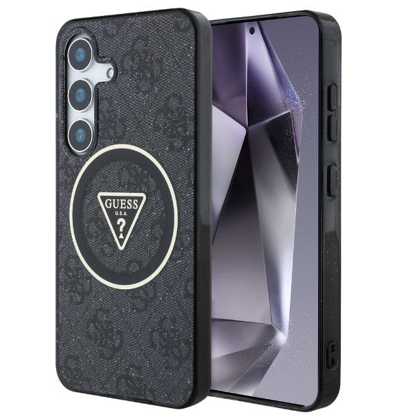 Guess 4G Glitter Triangle Buttons MagSafe Samsung Galaxy S25 black