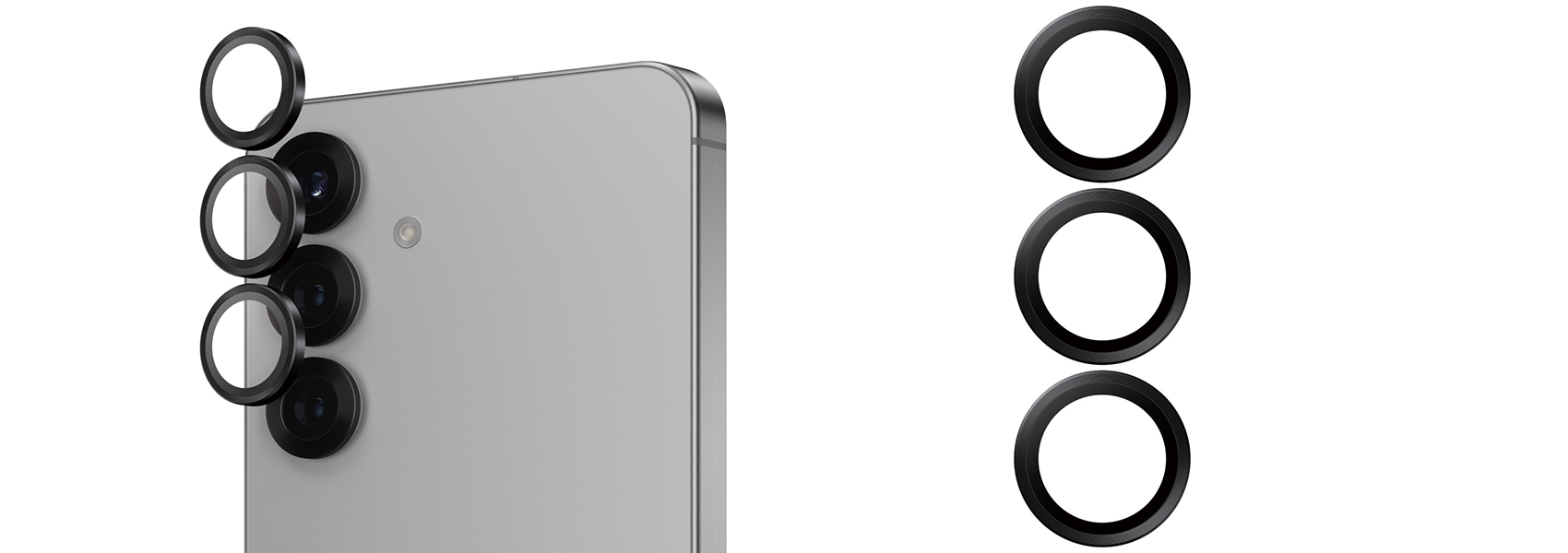 The camera lens protector PanzerGlass® Hoops® protects the lenses from scratches, falls onto stone floors, and the creaky kiss of keys in your pocket. The sleek optical rings are equipped with scratch and shock-resistant glass and a black aluminum frame that protects the lenses and looks great. And if you're worried about image distortion, you can rest easy: Hoops® do not affect the clarity of the lenses or the quality of photos – they just give you a little more peace of mind.