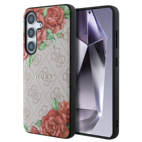 Guess Leather 4G Flowers Print Metal Classic Logo MagSafe Samsung Galaxy S25 pink
