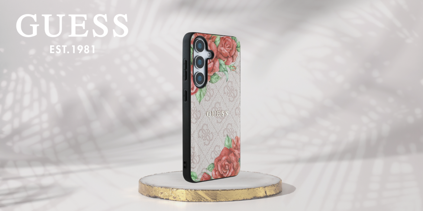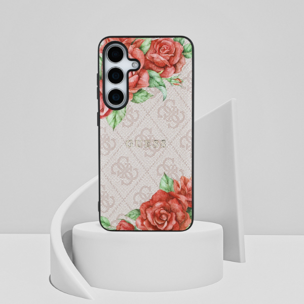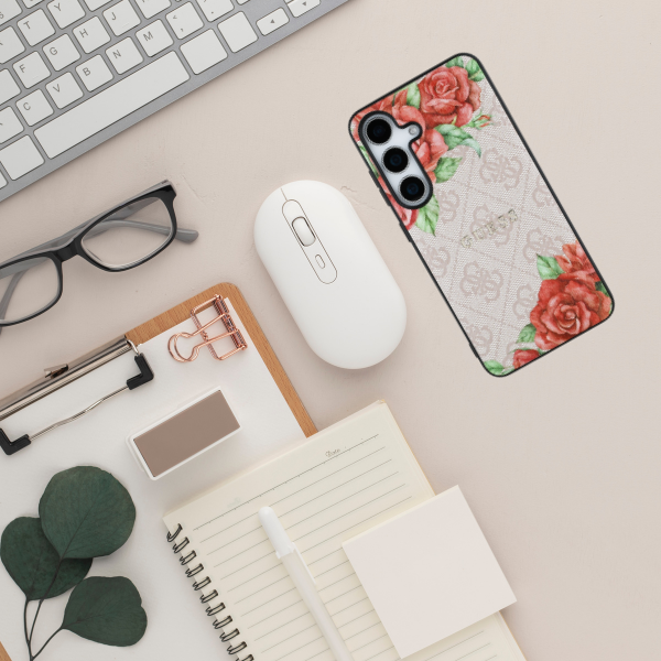 The surface of the case is made of eco-leather is decorated with a distinctive pattern 4G and subtle the motif of flowers, which adds a stylish and feminine character. A luxurious touch is gold logo Guess placed on the case, which highlights the elegance and high quality of the product.