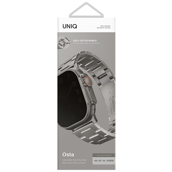 UNIQ Osta strap Apple Watch 4/5/6/7/SE/8/9/Ultra 44/45/49mm Stainless Steel silver/titanium silver