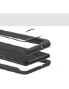 Przednia część to ramka oplatająca krawędzie telefonu wraz ze zintegrowaną szybką hybrydową o twardośći 5H, bok i część tylna to szkielet konstrukcyjny.