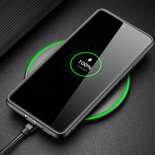 Pokrowiec nie zawiera żadnych metalowych elementów. Możesz bezpiecznie korzystać z bezprzewodowej ładowarki Qi bez ściągania etui.