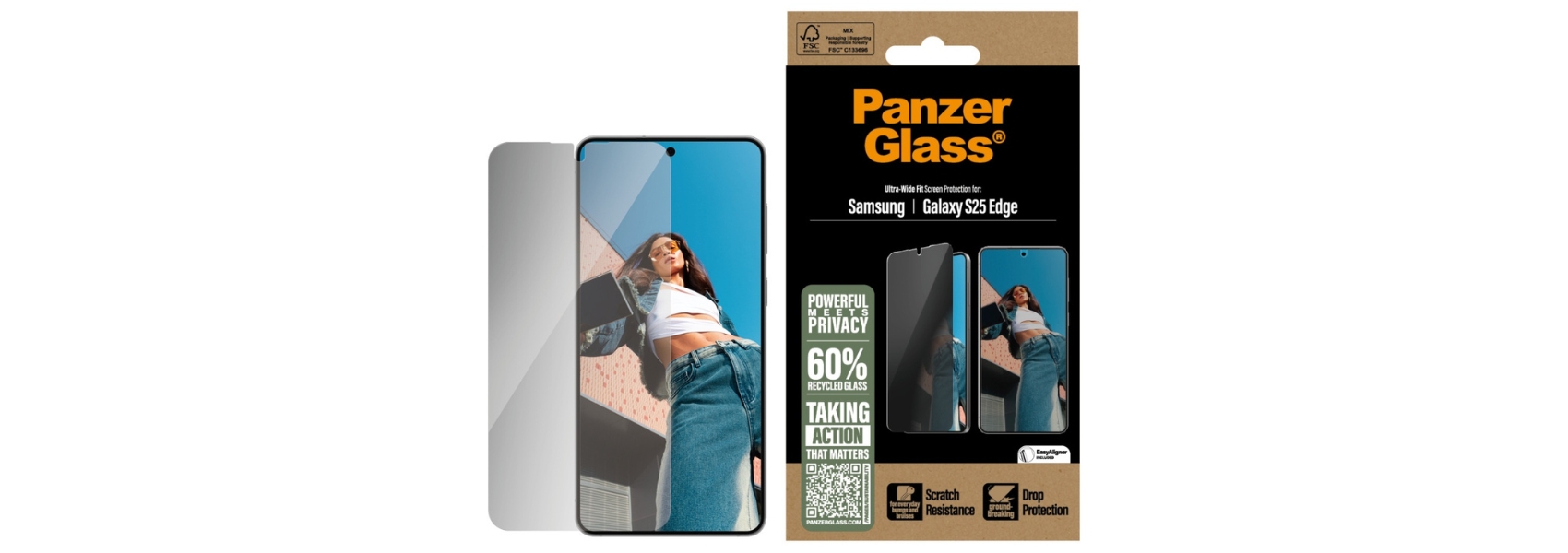 Sprawdź nasze szkło ochronne PanzerGlass®! Wykonane w 60% ze szkła pochodzącego z recyklingu, chroni Twoje dane osobiste przed wścibskimi sąsiadami w pociągu, kawiarni lub biurze. Filtr prywatności sprawia, że zawartość Twojego ekranu jest niewidoczna dla wszystkich oprócz Ciebie. Posiada powłokę zapobiegającą powstawaniu smug, która redukuje ślady odcisków palców i tłuszczu oraz zapewnia 100% zgodność z ultradźwiękowym czytnikiem linii papilarnych na ekranie, dzięki czemu możesz mieć pewność, że Twój telefon odblokuje się płynnie za każdym razem.