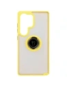 Etui z uchwytem na palec Bizon Case Hybrid Ring do Samsung Galaxy S25 Ultra przydymione z żółtą ramką