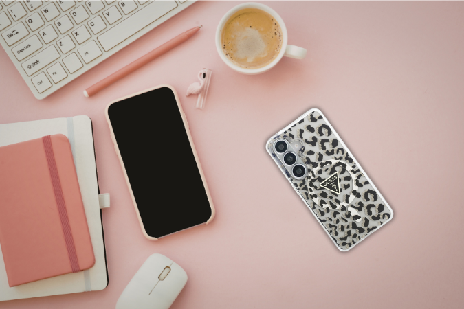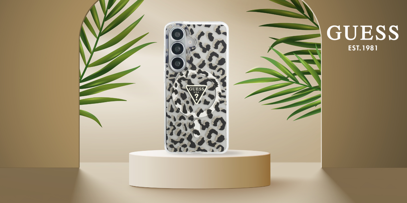 Ekskluzywne etui ochronne od renomowanej marki Guess to połączenie elegancji i stylu na najwyższym poziomie. Etui wykonano z wysokiej jakości poliwęglanu oraz poliuretanu. Powierzchnię zdobi zwierzęcy wzór, przypominający cętki oraz złoty pierścień MagSafe.