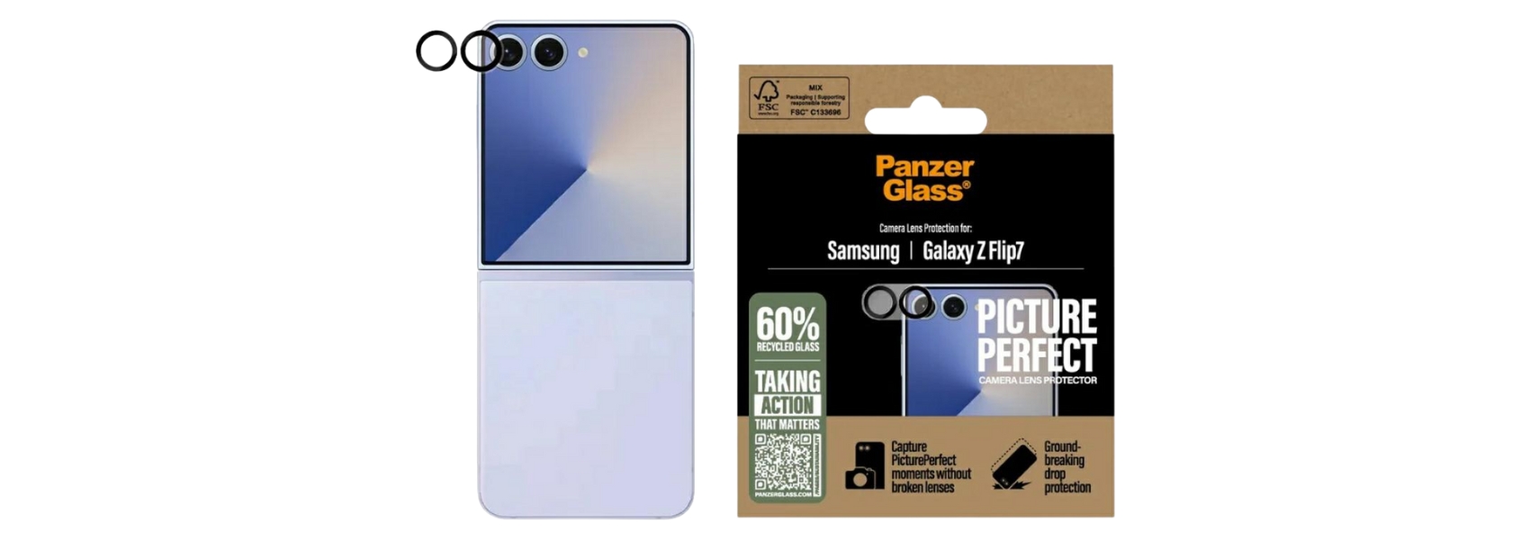 Osłona PicturePerfect nie tylko zabezpiecza obiektyw, ale także przyczynia się do wydłużenia żywotności telefonu. Dzięki temu może on z powodzeniem posłużyć kolejnemu użytkownikowi – komuś, kto pokocha go tak samo jak Ty. To niewielki krok w stronę bardziej zrównoważonej przyszłości. Producent również podjął działania w tym kierunku – w 2024 roku zredukował ilość papieru w opakowaniach podstawowych produktów średnio o 66%* i wykorzystuje wyłącznie materiały nadające się do recyklingu, posiadające certyfikat FSC™.