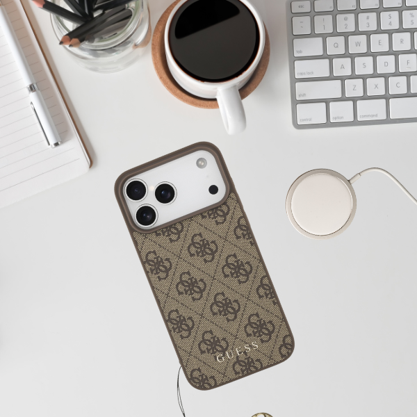 Etui Guess 4G Charms Collection MagSafe do Apple iPhone 17 Pro Max brązowy
