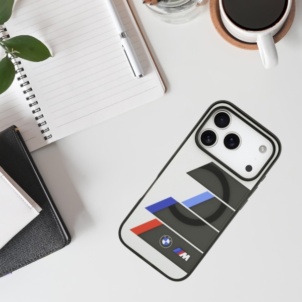 Etui BMW M IML Metal Buttons Tricolor Lines MagSafe to połączenie sportowego stylu i nowoczesnego minimalizmu inspirowanego linią BMW M.
