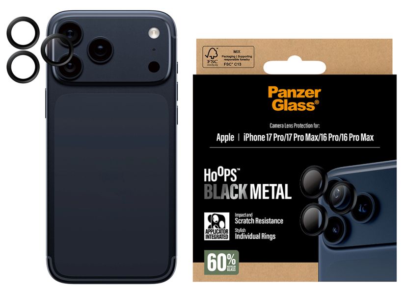 Szkło hartowane na obiektyw PanzerGlass Hoops do Apple iPhone 17 Pro / 17 Pro Max / 16 Pro / 16 Pro Max czarny
