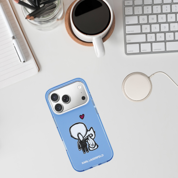 Etui Karl Lagerfeld Karl & Choupette Back MagSafe do Apple iPhone 17 Pro niebieski