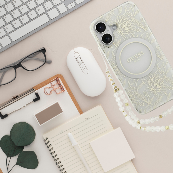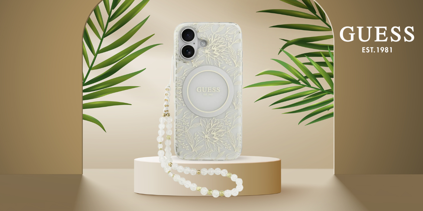 Ta elegancka kolekcja zachwyci nawet najbardziej wybredne i wyrafinowane gusta. Wierzchnia warstwa pokrowca zachwyca subtelnym, złotym, roślinnym wzorem, który nadaje mu elegancji i klasy. Centralnym punktem etui jest złoty pierścień MagSafe, otaczający stylowe logo GUESS, które dodaje prestiżu i podkreśla wyjątkowy design. Całość uzupełnia gustowny koralikowy brelok, doskonale współgrający z kolorystyką pokrowca, z literkami tworzącymi nazwę „GUESS”, co sprawia, że akcesorium to jest nie tylko praktyczne, ale i wyjątkowo modne.