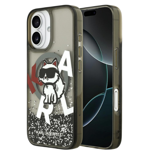 Etui Karl Lagerfeld Liquid Glitter Choupette Logo MagSafe do Apple iPhone 17 czarny