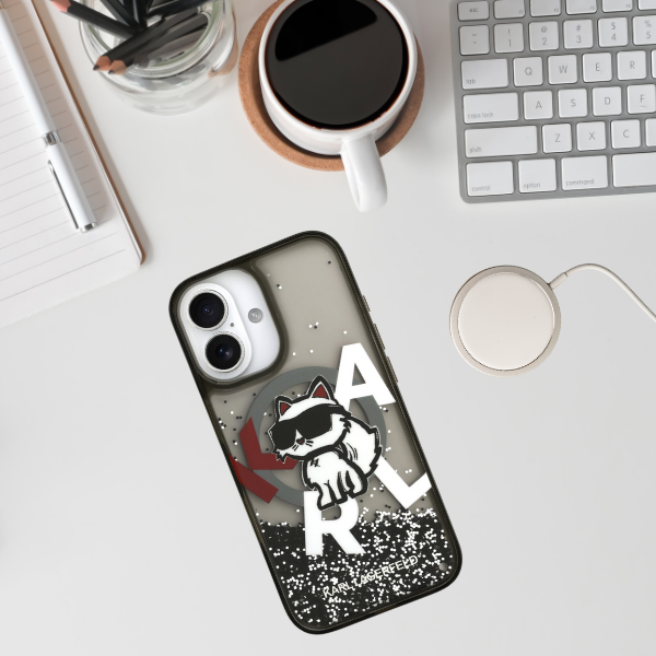 Etui wykonano z wysokiej jakości materiałów i jest nie tylko stylowe, ale także trwałe i odporne na ścieranie. Etui zostało starannie zaprojektowane, aby nie tylko chronić Twój telefon, ale także podkreślać Twój indywidualny styl. Wystarczy delikatnie wstrząsnąć telefonem wyposażonym w to etui, aby odkryć przepiękne drobinki brokatu, mieniące się w świetle. Seria ta wyróżnia się unikalną grafiką, prezentującą podobiznę słynnej kotki Choupette, oraz litery KARL.