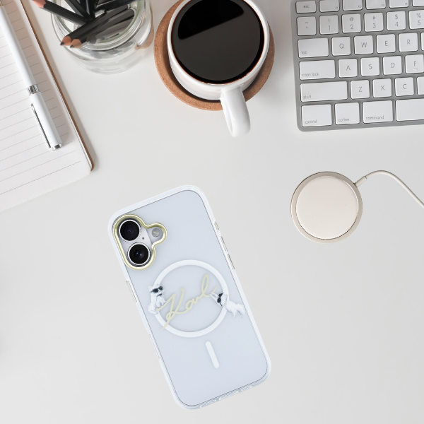 Seria IML Choupettes Karl Script Logo MagSafe to idealne rozwiązanie dla tych, którzy pragną harmonii pomiędzy funkcjonalnością a wyjątkowym stylem dla swojego smartfona. Oferując solidną ochronę, ta wyjątkowa kolekcja nie tylko zapewnia bezpieczeństwo urządzenia, ale także dodaje mu niepowtarzalnego charakteru, przyciągając uwagę swoim unikalnym designem.