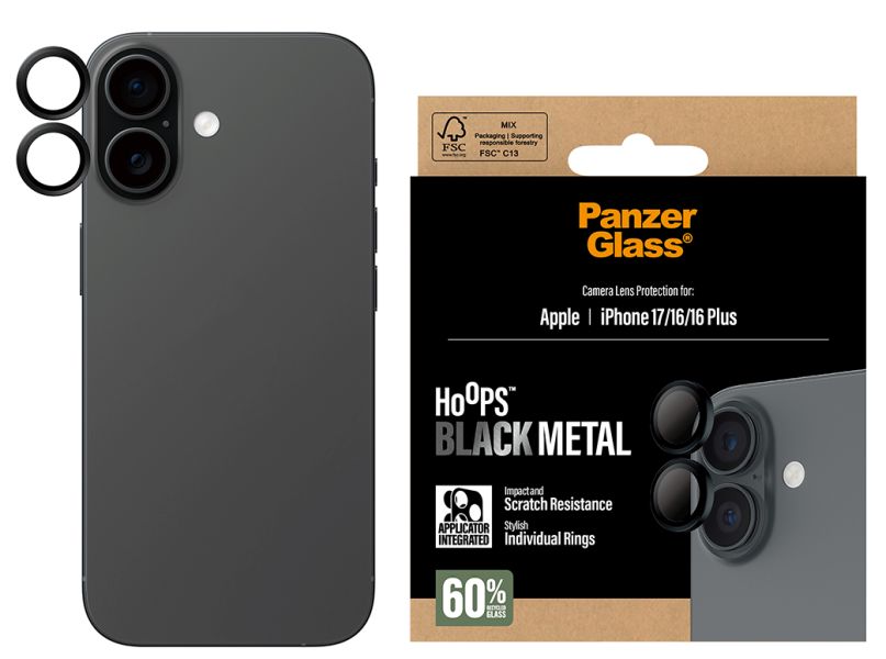 Szkło hartowane na obiektyw PanzerGlass Hoops do Apple iPhone 17 / 16 / 16 Plus czarny