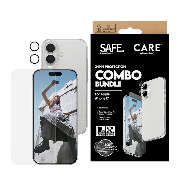 Zestaw ochronny CARE by PanzerGlass Fashionable Combo 3w1 Etui+Szkło+Lens do Apple iPhone 17