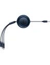 Prezentowany gadżet Baseus to prosta, lecz trwała konstrukcja. W środkowej części przewodu znajduje się szpula z logo producenta wykonana w ciekawym stylu. W niej znajduje się zwinięty kabel, który w razie konieczności naładowania sprzętu można w prosty sposób rozwinąć i wpiąć do ładowarki. Z drugiej strony znajduje się rozgałęzienie z trzema dodatkowymi wejściami. Kabel wpinany do zasilania został pokryty materiałem ochronnym, co wpływa na jego odporność przed przetarciem się czy zagięciem.