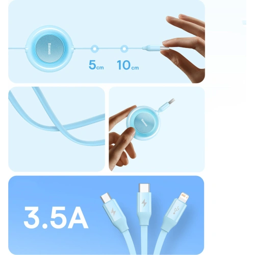 Kabel 3w1 Baseus Bright Mirror 2 USB Typ A - micro USB/Lightning/USB Typ C 3.5A 1.1m niebieski