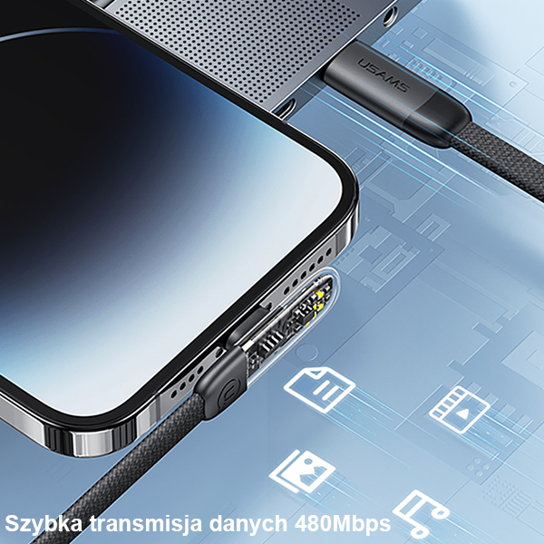 Przewód jest kompatybilny z technologią Fast Charging i PD (Power Delivery) - zapewnia szybkie ładowanie urządzenia bez uszkodzenia jego baterii. Kabel użyty z ładowarką kompatybilną z technologią PD pozwala na naładowanie baterii smartfona do poziomu 50% w 30 minut. Kabel jest w pełni kompatybilny z systemem iOS i pozwala na transmisję danych z prędkością do 480 Mbps- przesłanie pliku o rozmiarze 1GB trwa tylko 30 sekund.