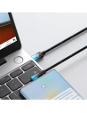Boczny wtyk zmniejsza niebezpieczeństwo uszkodzenia kabla i zwiększa wygodę jego użytkowania. Kabel idealny dla graczy, ponieważ nie utrudnia grania oraz umożliwia odpowiedni chwyt telefonu. Został wykonany z wysokiej jakości TPE i umieszczony w mocnym oplocie z nylonu i żyłki wędkarskiej dzięki czemu jest trwały i wytrzyma bardzo wiele. Design kabla oraz materiały, z których powstał, ograniczają plątanie się akcesorium. Natężenie rzędu 5A, 100W mocy i cynowany, miedziany przewód są gwarancją szybkiego i bezpiecznego odnawiania energii. Produkt przeznaczony do pracy ze wszystkimi urządzeniami z portem USB Typ C.