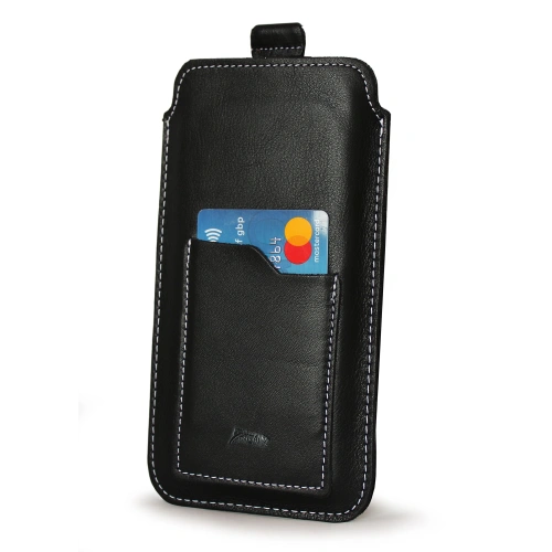 Skórzane etui uniwersalne LURESKO ASTER XXXL z oczkiem na smycz wsuwka na telefon 6.5' - 6.9' (czarny gładki biała nić)