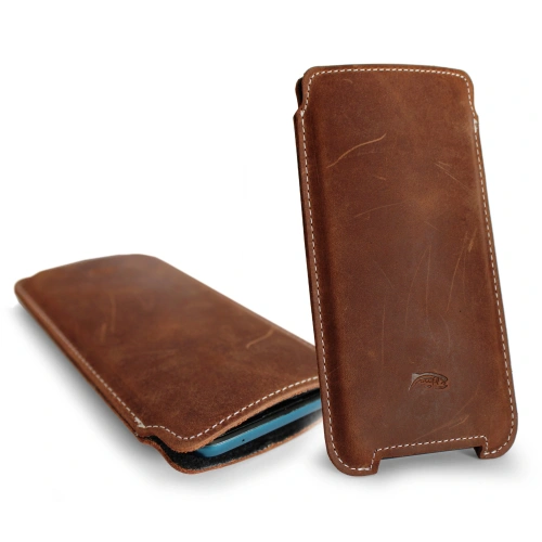 Skórzane etui LURESKO NORTHERN XXXL typu wsuwka na telefon (brąz vintage biała nić)
