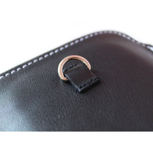 Skórzane etui uniwersalne z oczkiem na smycz LURESKO NEW ASTER XXXL wsuwka na telefon 6.5' - 6.9' (czarny gładki biała nić)