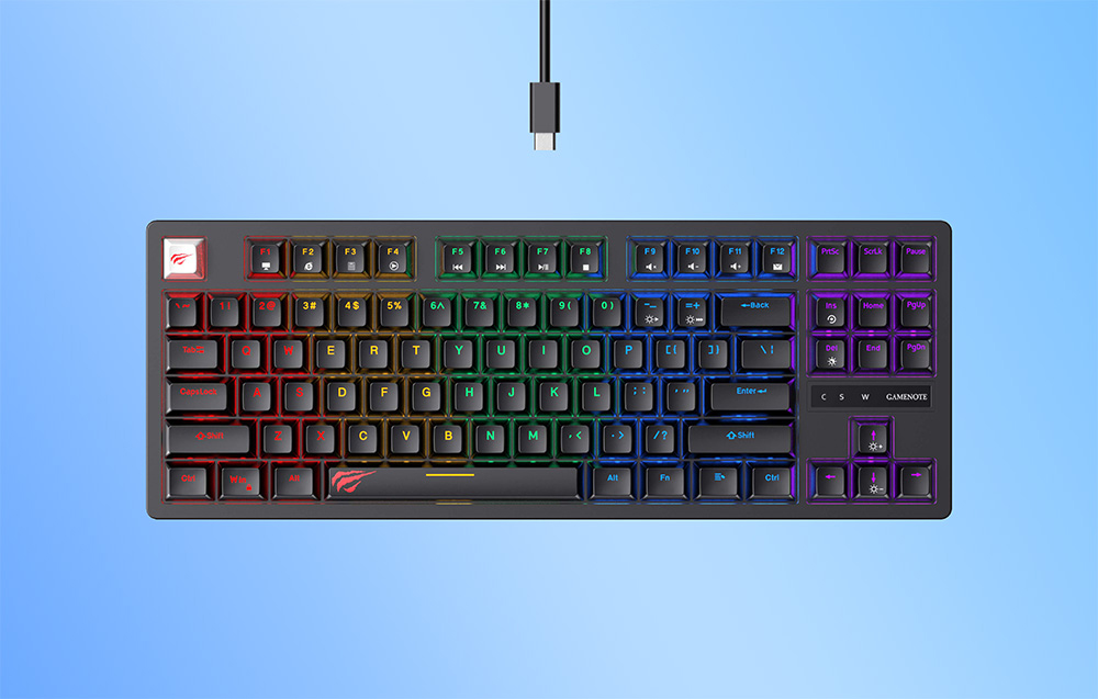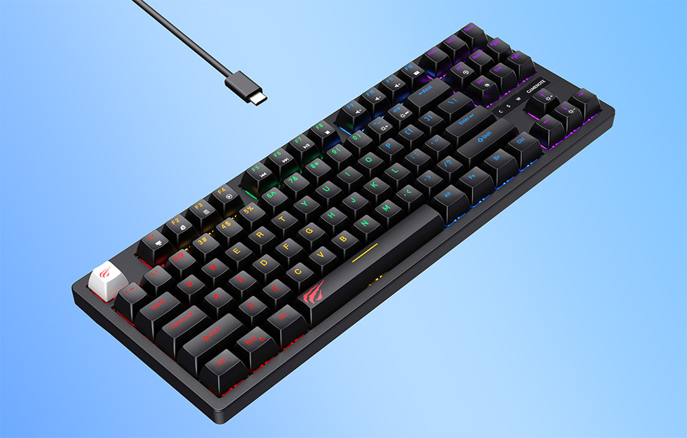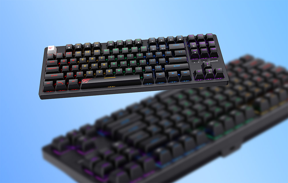 Havit KB892L to kompaktowa klawiatura gamingowa, która oferuje doskonałą funkcjonalność oraz nowoczesny design. Wyposażona w 87 klawiszy, zapewnia wszystkie niezbędne funkcje w ergonomicznym i kompaktowym formacie. Dzięki podświetleniu RGB, wytrzymałej konstrukcji i wygodnemu połączeniu przez USB, klawiatura spełni oczekiwania zarówno graczy, jak i osób poszukujących niezawodnego sprzętu do codziennej pracy.