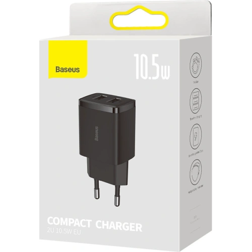 Baseus Compact ładowarka sieciowa 2x USB 10.5W czarny (CCXJ010201)
