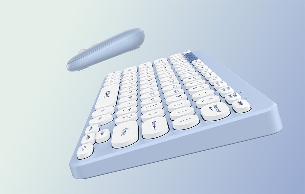 Bezprzewodowa klawiatura z zestawu wyróżnia się ergonomiczną konstrukcją oraz nowoczesnym designem. Smukły profil, wzbogacony o unikalne klawisze Chocolate freestanding keycap, łączy lekkość z funkcjonalnością, oferując przy tym modny i minimalistyczny wygląd. Dzięki klawiszom multimedialnym użytkownik może szybko korzystać z funkcji takich jak regulacja głośności czy otwieranie ulubionych aplikacji. Dodatkowo klawisze zostały zaprojektowane z myślą o redukcji hałasu, co sprawia, że praca z klawiaturą nie przeszkadza współlokatorom ani rodzinie. Klawiatura ma żywotność wynoszącą aż 10 milionów kliknięć, co czyni ją solidnym wyborem na długie lata.