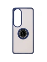 Etui z uchwytem na palec Bizon Case Hybrid Ring do Oppo A60 4G przydymione z granatową ramką