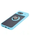 Etui z uchwytem na palec Bizon Case Hybrid Ring do Google Pixel 8 przydymione z jasnoniebieską ramką