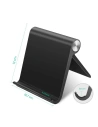 Podstawka sprawdzi się idealnie dla telefonów i tabletów. Wymiary 120 mm x 107 mm pozwalają na wszechstronne użycie stojaka.