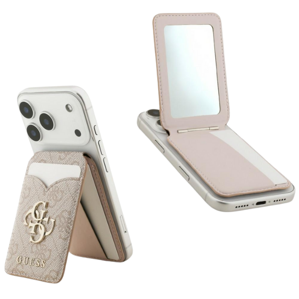 Portfel z lusterkiem Guess 4G Stand & Mirror MagSafe różowy