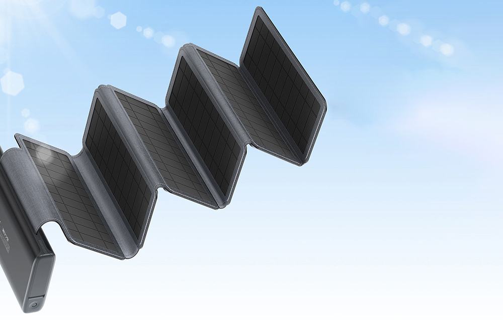 Solarny Powerbank ROMOSS wyposażony jest w 6 paneli słonecznych, które umożliwiają szybsze samoładowanie w naturalny sposób. Dodatkowo zdejmowane panele słoneczne pozwalają na podwójne zastosowanie – możesz korzystać z powerbanku zarówno na zewnątrz, jak i wewnątrz. Innowacyjne odłączane panele zapewniają wszechstronność, idealną podczas wycieczek w góry czy innych aktywności na świeżym powietrzu. Panele słoneczne, które oferuje powerbank, dają Ci możliwość uzyskania dodatkowej mocy – łącznie do 9W.