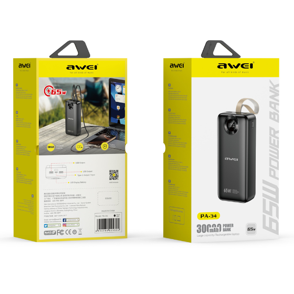 Powerbank Awei PA-34 30000mAh 65W Fast charging czarny