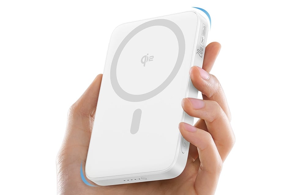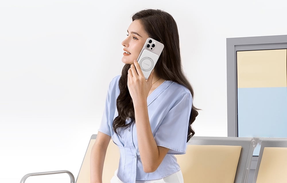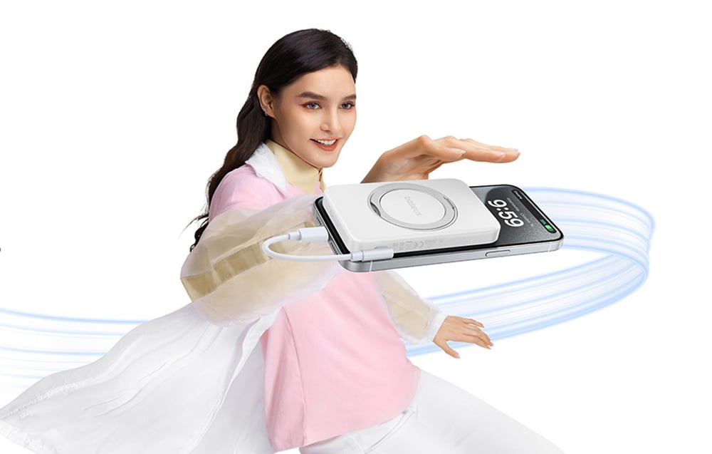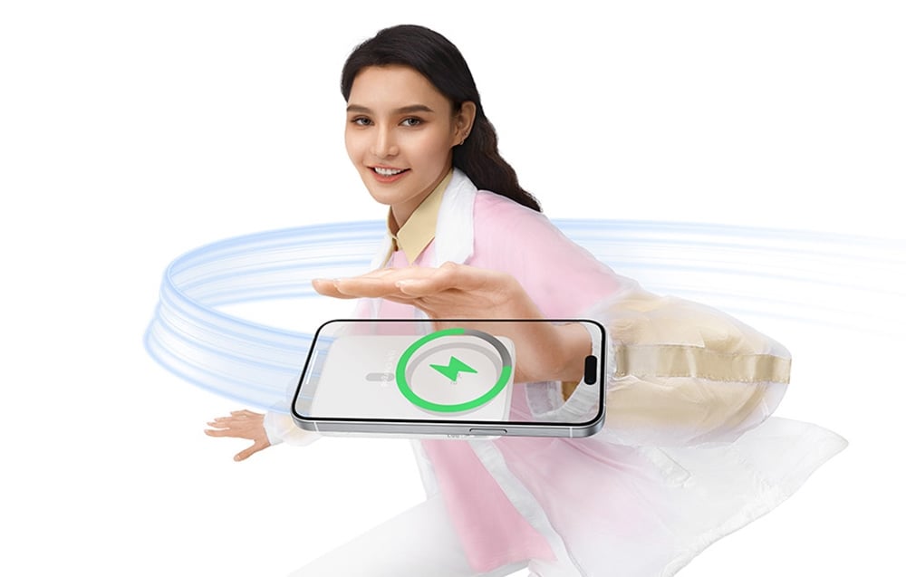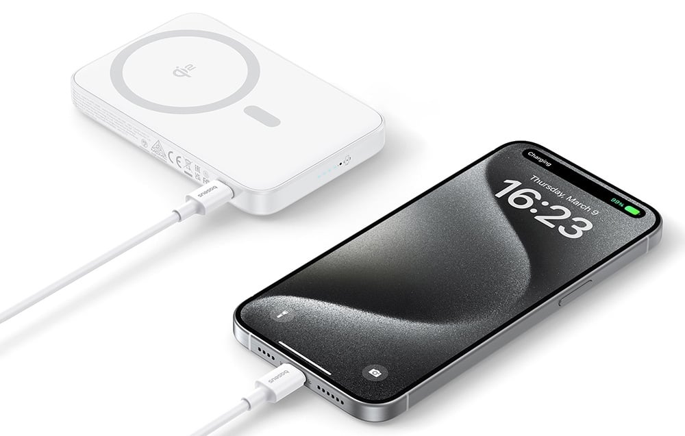 Za sprawą technologii Qi2 powerbank umożliwia ładowanie bezprzewodowe z mocą do 15 W, co oznacza wygodę i brak potrzeby korzystania z kabli. Magnetyczny uchwyt zapewnia stabilność telefonu podczas ładowania, a składany stojak pozwala na wygodne ustawienie urządzenia pod różnymi kątami – idealne do prowadzenia wideorozmów lub oglądania filmów.