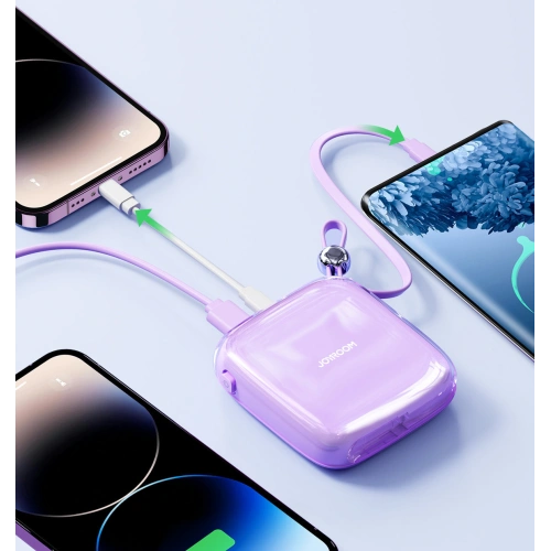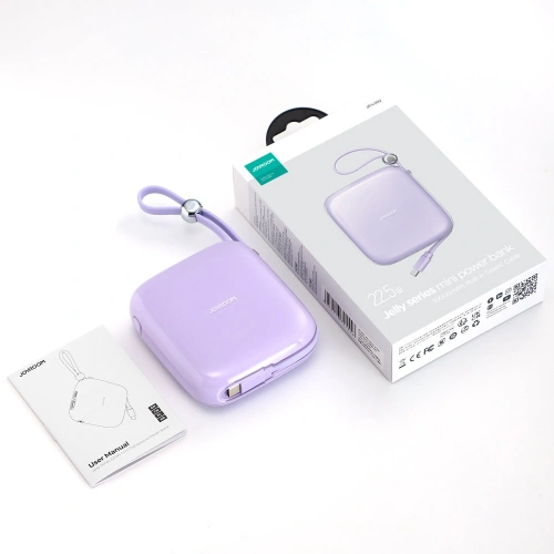 Powerbank 10000mAh o mocy do 22,5 W Joyroom Jelly Series JR-L002 z wbudowanym kablem USB C – fioletowy