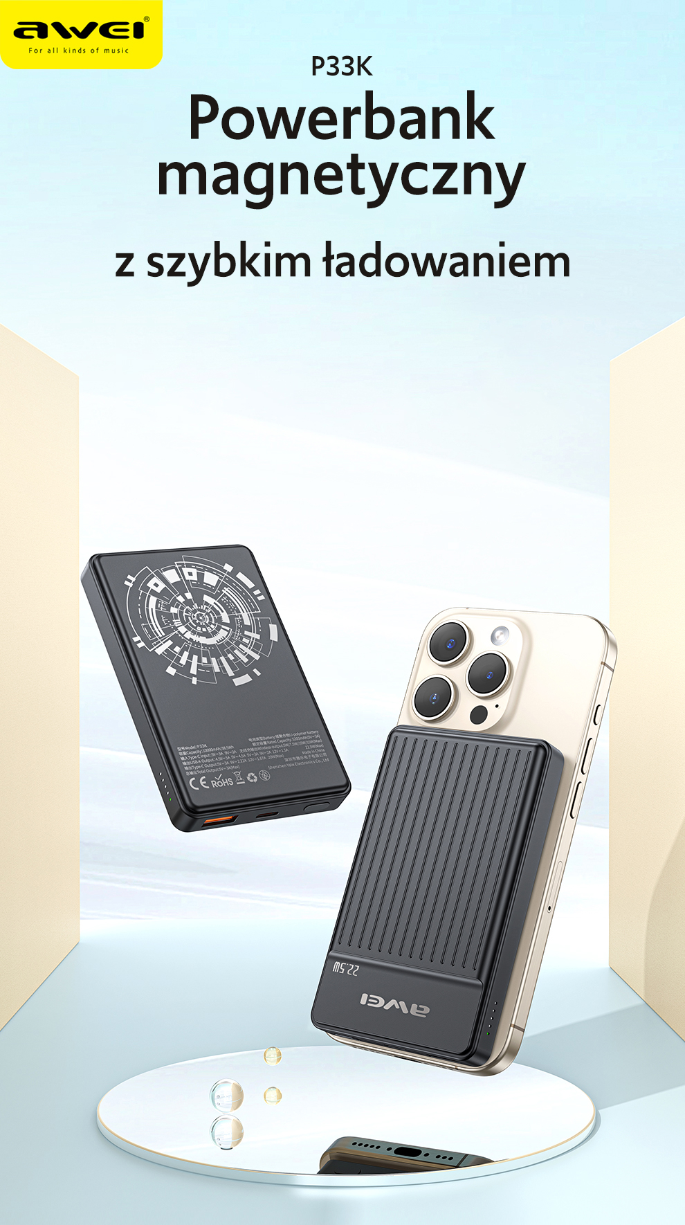 Powerbank magnetyczny AWEI P33K MagSafe 10000mAh 22.5W czarny/black