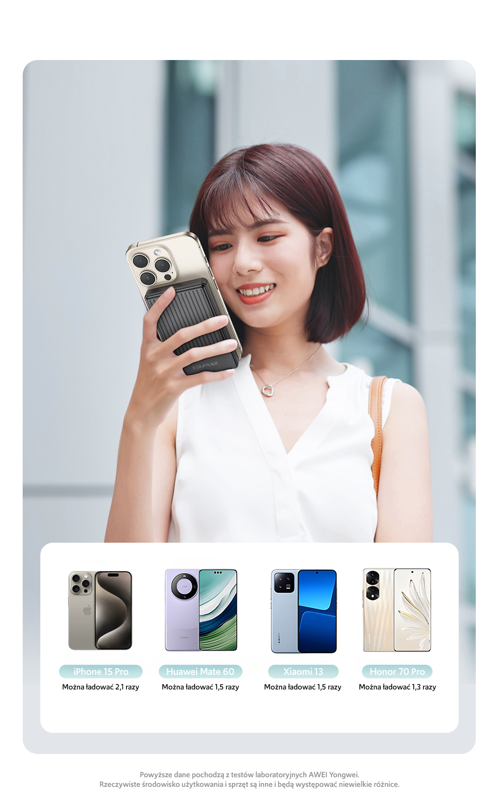 Cienki, lekki i kompaktowy, można go trzymać w jednej ręce i dobrze pasuje. Ładuj i komfortowo korzystaj z urządzenia w tym samym czasie.