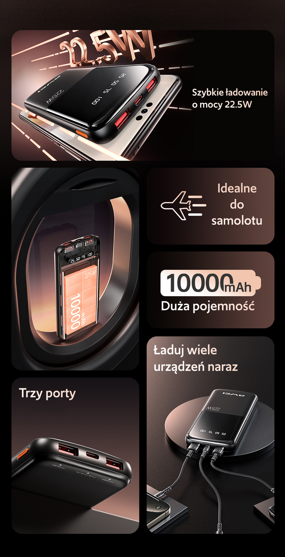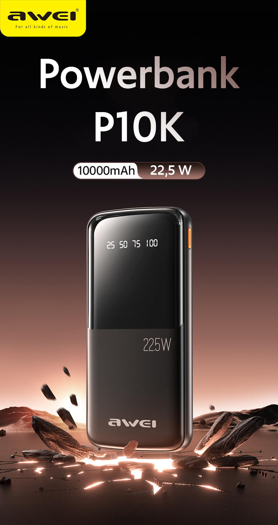 Powerbank AWEI P10K 10000mAh 22.5W czarny/black