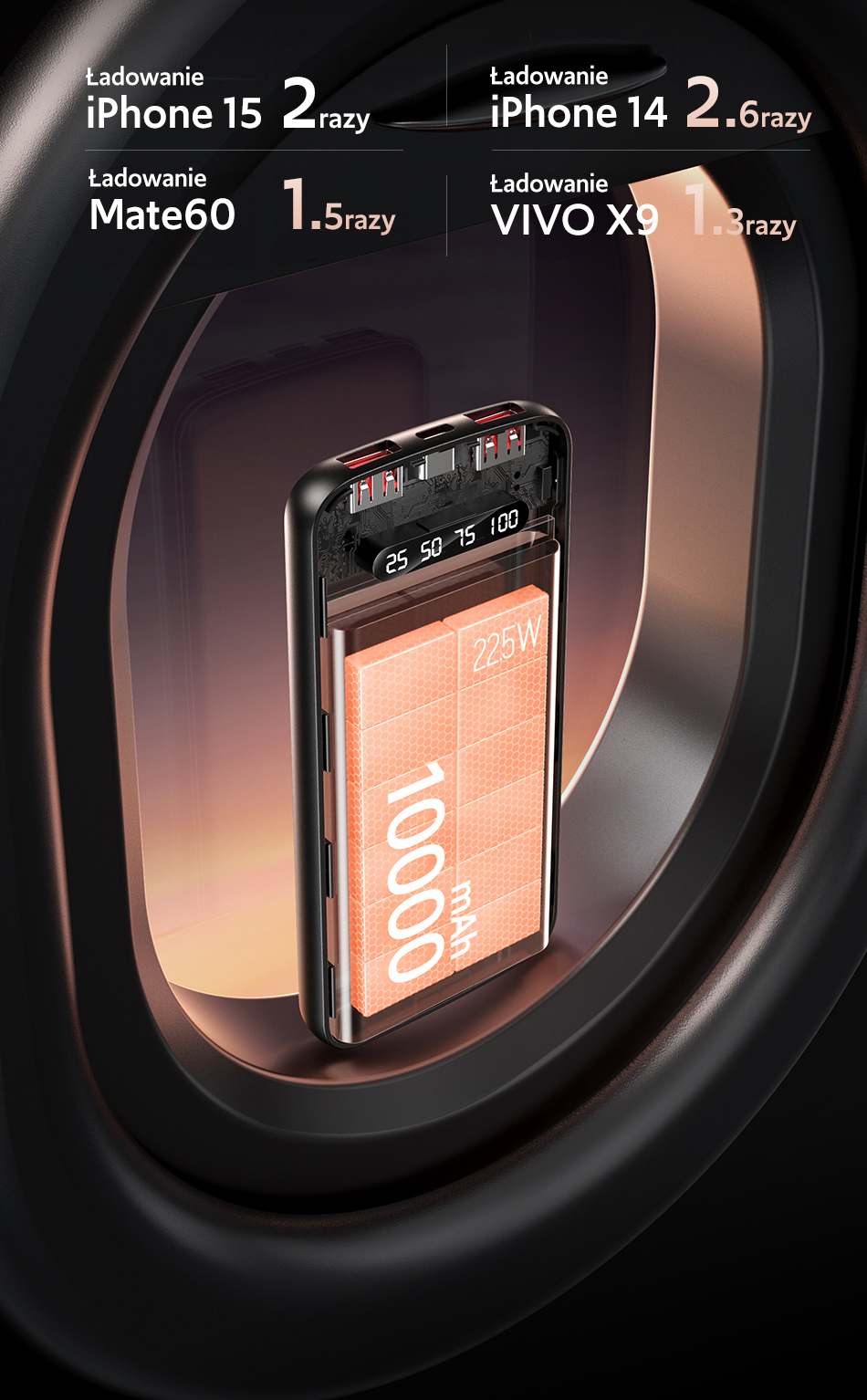10000 mAh pełnej energii. Podróżuj bez zmartwień o twoją baterie.